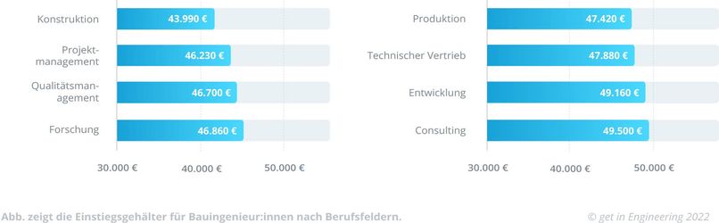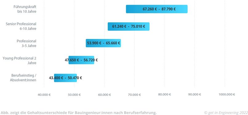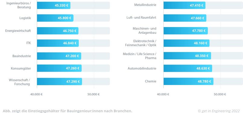 - Als Bauingenieur:in liegt Dein Einstiegsgehalt bei 48.100 €.