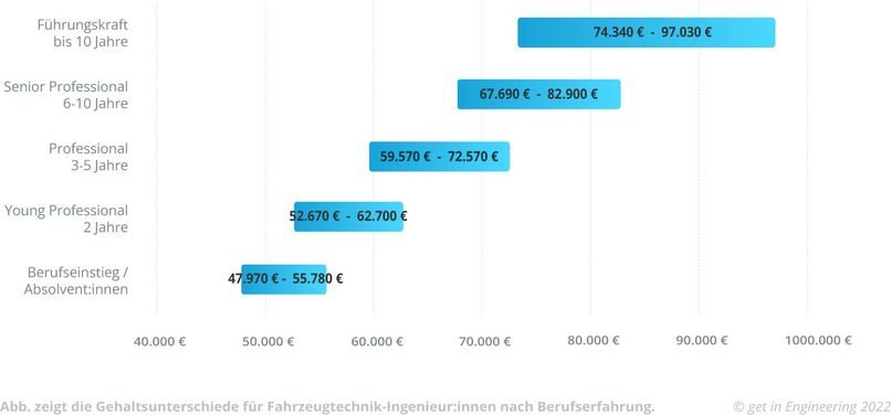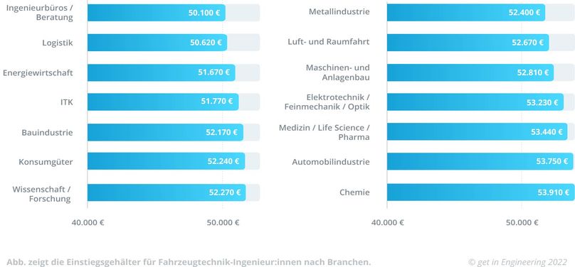- Als Ingenieur:in für Fahrzeugtechnik steigst Du mit einem Gehalt von 54.300 € in den Job ein – und liegst damit über dem Durchschnitt der anderen Berufsstarter:innen im Ingenieurwesen.