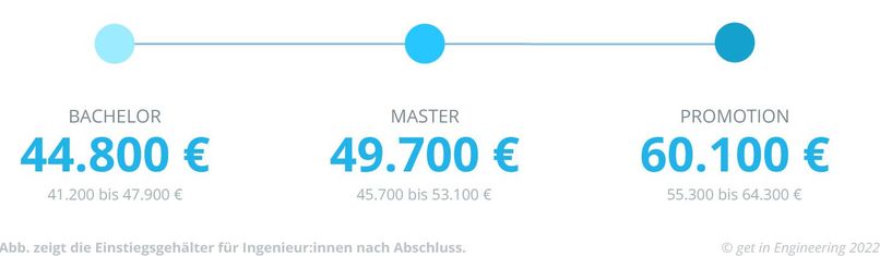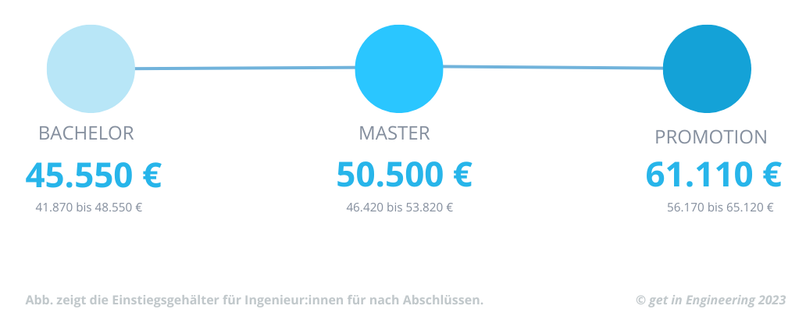 Eine der wichtigsten Fragen für Berufsanfänger:innen lautet: Wie viel Geld kann ich eigentlich in meinem Job verdienen? Diese Frage ist gar nicht so leicht zu beantworten, weil Dein Gehalt von vielen Einflussfaktoren wie etwa Deinem Abschluss und der Unternehmensgröße beeinflusst wird. Als grobe Einordnung vorweg: Wenn Du mit dem Studium fertig bist, steigst Du als Ingenieur:in über alle Berufe und Branchen hinweg mit einem Gehalt von 53.300 € ein. Durch die vielen Kriterien, die Dein Gehalt bestimmen, solltest Du Dich aber nicht zu sehr auf diesen Durchschnittswert fokussieren. Die gesamte Spannbreite der Ingenieur-Einstiegsgehälter liegt zwischen 43.900 € und 70.000 €. Obwohl Corona im zu einer weltweiten Wirtschaftskrise geführt hat, sind die Ingenieur:innen-Gehälter im Allgemeinen inzwischen wieder gestiegen.