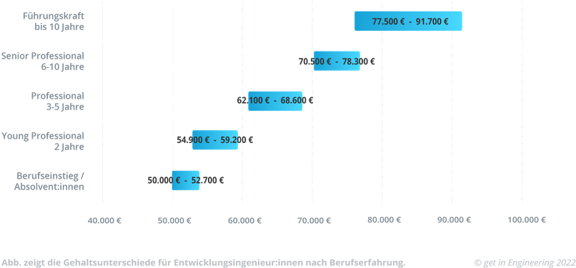 - Als Entwicklungsingenieur:in steigst Du nach dem Studium im Durchschnitt mit einem Gehalt von 56.600 € in den Job ein.