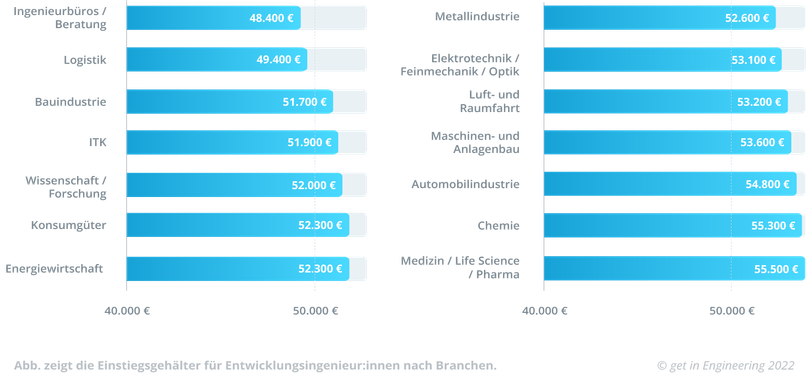 3. Branchen: Hier ist Dein Einstiegsgehalt als Entwicklungsingenieur:in am höchsten