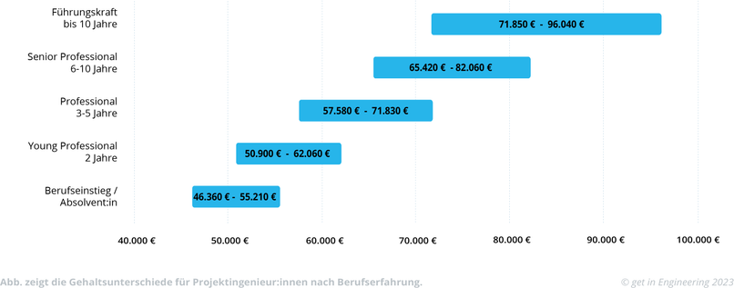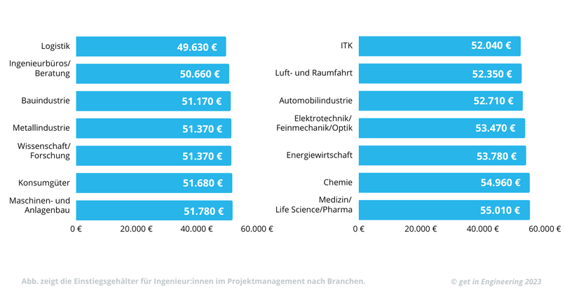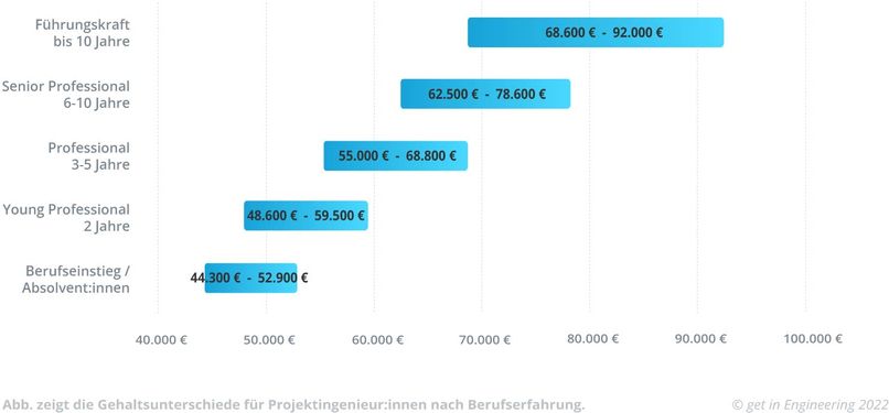 - Wenn Du als Ingenieur:in im Projektmanagement in den Job einsteigst, liegt Dein Gehalt direkt nach dem Studium bei 54.500 €. Je mehr Kenntnisse Du etwa in BWL oder Marketing hast, desto besser ist Deine Position in einer Gehaltsverhandlung.
