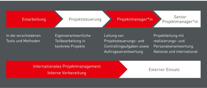 Wir begleiten Sie bei Ihrem Berufseinstieg und durch eine gezielte Personalentwicklung sowie unser familienfreundliches Arbeitsumfeld tragen wir zu Ihrem Wohlbefinden, Ihrer Zufriedenheit und Ihrer Motivation bei. Unser Karrierepfad richtet sich gleichermaßen an Berufseinsteiger'innen und an erfahrene Mitarbeitende, die ihre Karriere gezielt voranbringen möchten. Ob als Absolvent'in oder als Professional: Sie werden bei uns schrittweise an vielfältige Aufgaben herangeführt, und wir fördern Sie aktiv auf allen Karrierestufen. Dabei stehen Ihnen erfahrene Mitarbeitende mit Rat und Tat bei Ihrer Entwicklung zur Seite. Unser flexibles Personalentwicklungsmodell unterstützt Sie auf Ihrem Karriereweg.